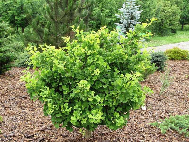 Mariken Dwarf Ginkgo is a multi-stemmed deciduous shrub with a more or less rounded form. Its average texture blends into the landscape, but can be balanced by one or two finer or coarser trees or shrubs for an effective composition.
