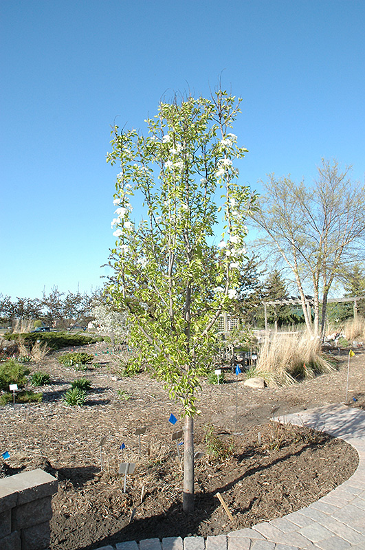 One of the hardiest pears with clouds of showy white flowers in spring, good fall color and a consistent oval form; small firm greenish-red fruit, reasonable quality, good flavor; fallen fruit can be messy, but self-pollinating and resistant to fireblight