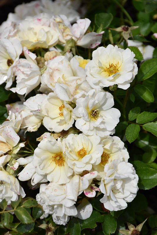 White Drift® Rose features showy double white flowers with gold eyes at the ends of the branches from mid spring to early fall. The flowers are excellent for cutting. It has dark green deciduous foliage. The oval compound leaves do not develop any appreciable fall colour.