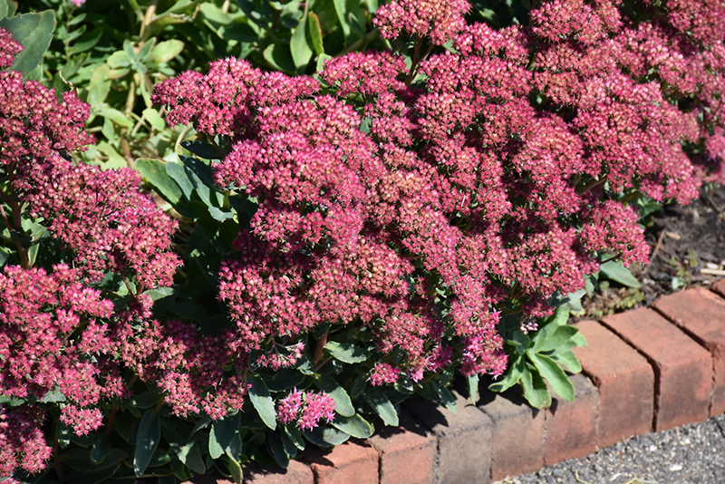 A compact upright stonecrop with very large magenta-pink bloom clusters held atop of distinct gray-green succulent foliage; a drought-tolerant perennial that does best in poor soils, an excellent choice for late summer color in the garden border
