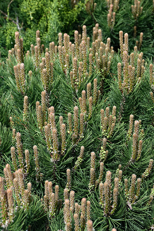 Palouse TRUdwarf® Mugo Pine will grow to be about 6 feet tall at maturity, with a spread of 6 feet. It tends to fill out right to the ground and therefore doesn't necessarily require facer plants in front, and is suitable for planting under power lines. It grows at a slow rate, and under ideal conditions can be expected to live for 40 years or more.