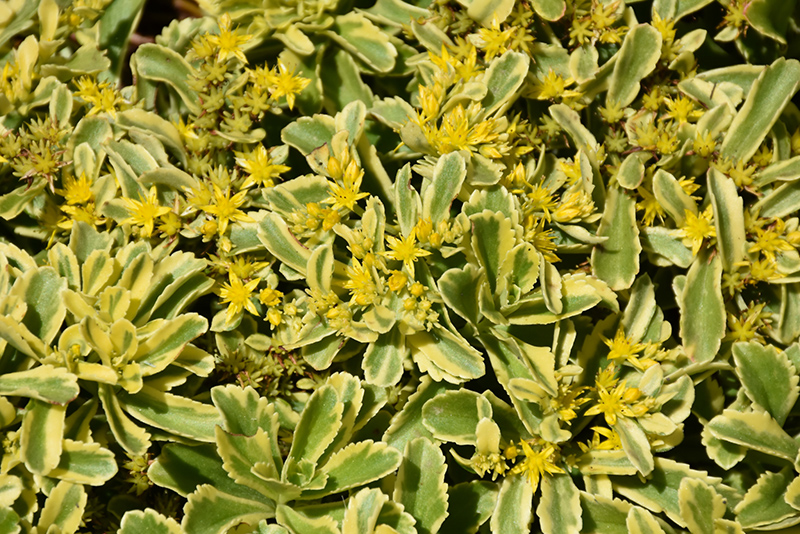 A short, vigorous stonecrop producing scalloped green leaves with chartreuse-yellow edges; flat cymes of dainty yellow flowers in summer; a drought-tolerant perennial that does best in poor soils; an excellent groundcover choice