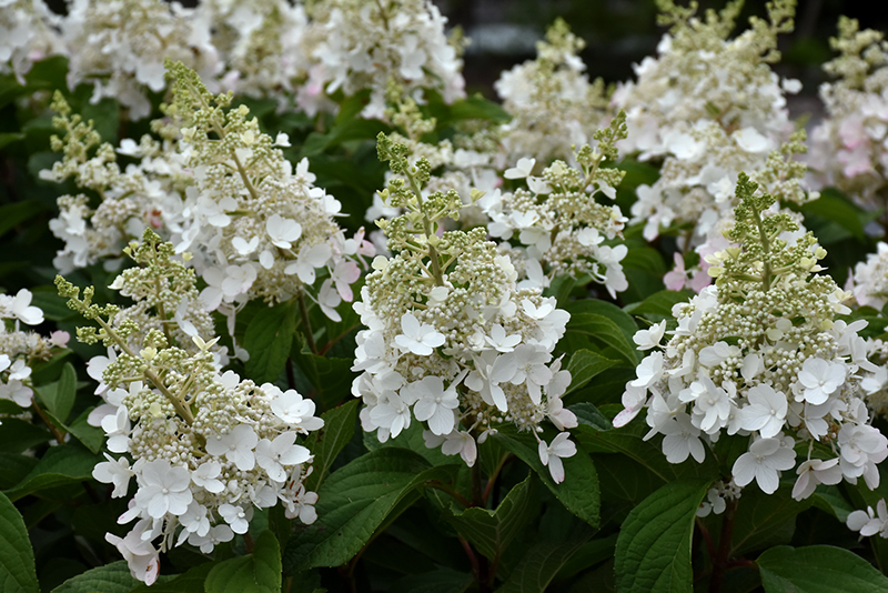 Candelabra™ Hydrangea features bold conical white flowers with pink overtones at the ends of the branches from mid summer to late fall. The flowers are excellent for cutting. It has green deciduous foliage. The pointy leaves do not develop any appreciable fall colour. The smooth gray bark and dark red branches add an interesting dimension to the landscape.