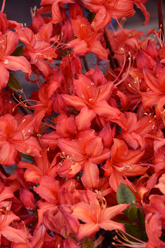 Electric Lights™ Red Azalea is smothered in stunning clusters of fragrant red trumpet-shaped flowers at the ends of the branches from mid to late spring before the leaves. It has forest green deciduous foliage which emerges light green in spring. The glossy oval leaves do not develop any appreciable fall colour.