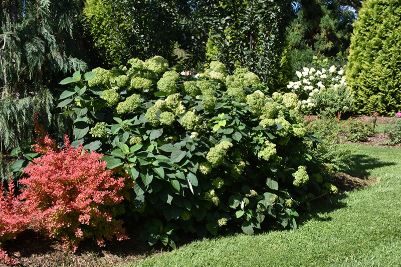 Invincibelle Sublime™ Smooth Hydrangea features bold clusters of lime green flowers with chartreuse overtones at the ends of the branches from mid summer to mid fall. The flowers are excellent for cutting. It has dark green deciduous foliage. The large textured heart-shaped leaves do not develop any appreciable fall colour.