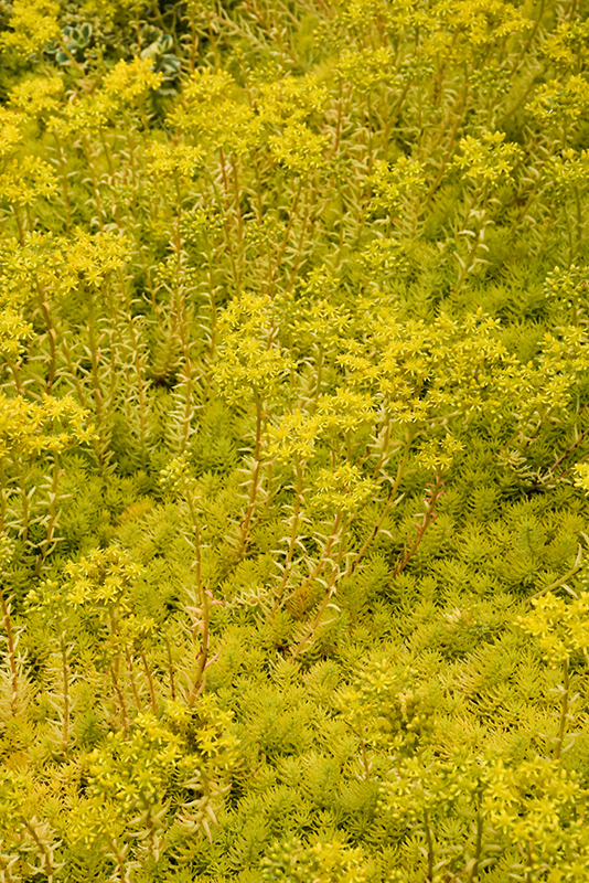 Prima Angelina Stonecrop will grow to be only 3 inches tall at maturity extending to 6 inches tall with the flowers, with a spread of 8 inches. When grown in masses or used as a bedding plant, individual plants should be spaced approximately 12 inches apart. Its foliage tends to remain low and dense right to the ground. It grows at a fast rate, and under ideal conditions can be expected to live for approximately 10 years. As an herbaceous perennial, this plant will usually die back to the crown each winter, and will regrow from the base each spring. Be careful not to disturb the crown in late winter when it may not be readily seen!