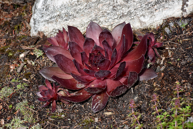 SuperSemp® Onyx Hens And Chicks is a dense herbaceous perennial with tall flower stalks held atop a low mound of foliage. Its relatively fine texture sets it apart from other garden plants with less refined foliage.