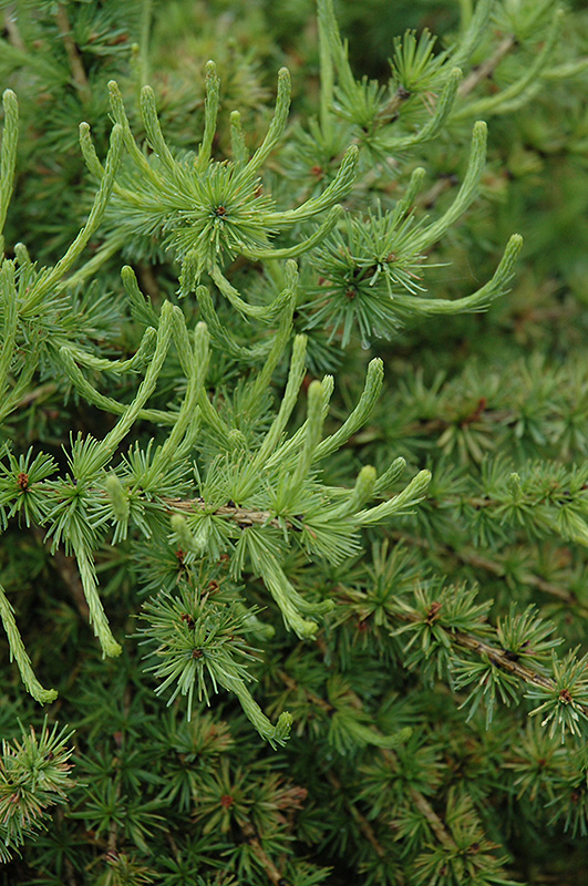 Prag Dwarf Larch is primarily valued in the landscape or garden for its interestingly mounded form. It has bluish-green deciduous foliage which emerges light green in spring. The needle-like leaves turn an outstanding gold in the fall. The rough gray bark and gold branches add an interesting dimension to the landscape.