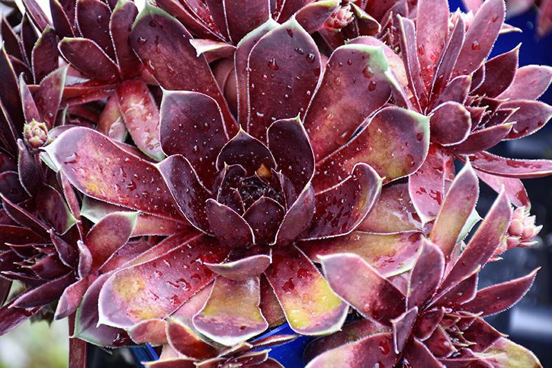 This variety is very hardy and drought tolerant; large rosettes with foliage that emerges lime-green and matures to a deep wine red with cream centers; dainty pink star flowers in summer; ideal for rock gardens and containers