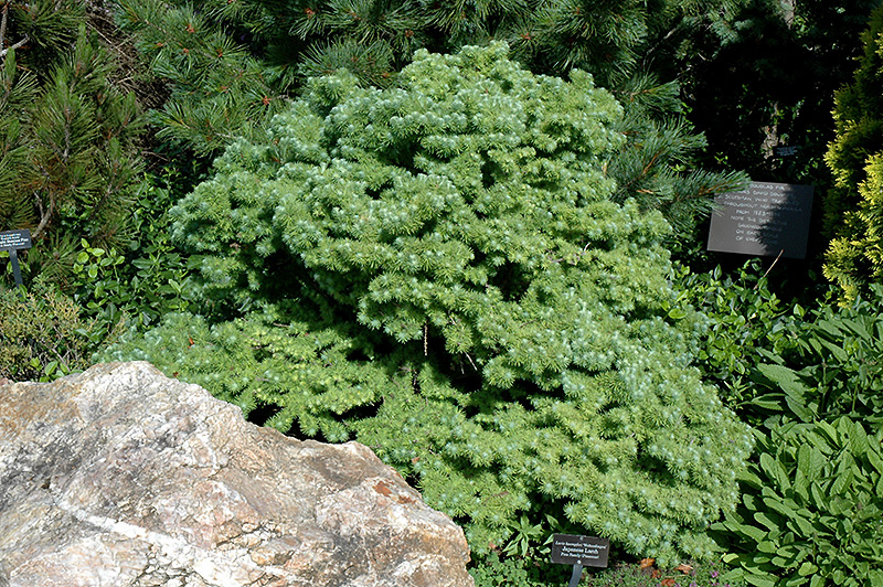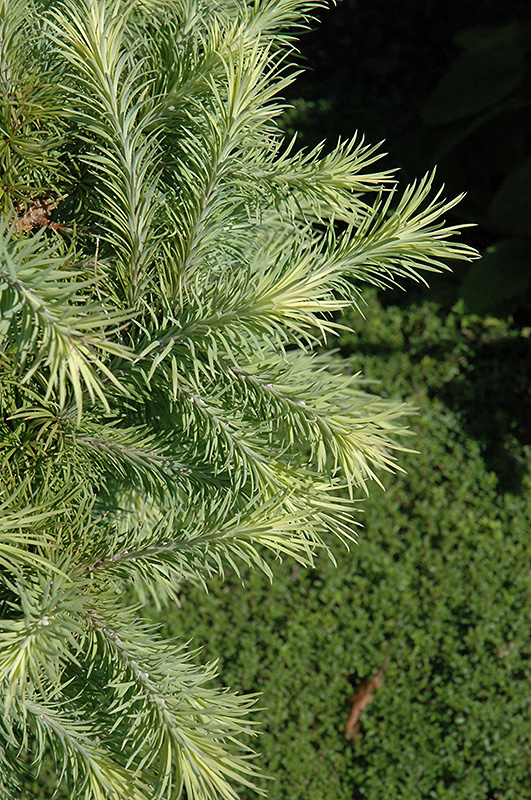 This attractive dwarf shrub is exceptional for tight landscapes or rock gardens; emerging needles are blue-green and mature to a sea green, with a fall display of golden yellow; the stems and bark are of great winter interest