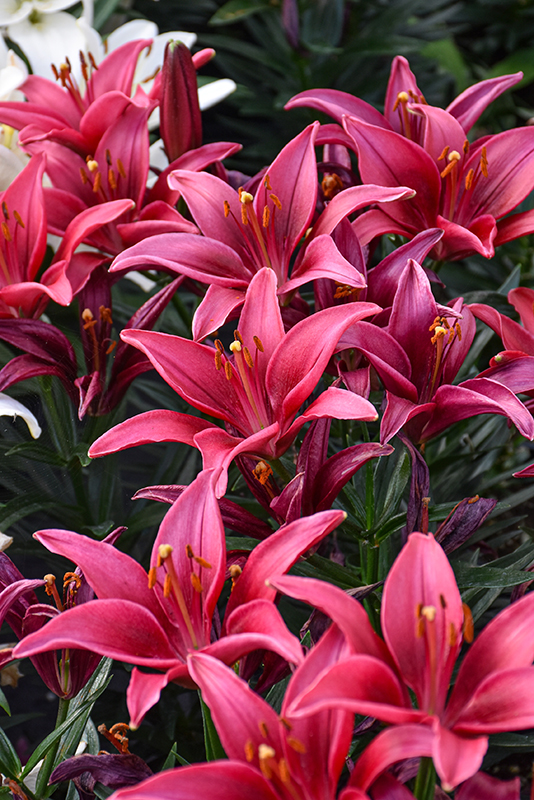 This variety is a compact lily that bears well formed, upward facing, deep burgundy blooms; perfect for containers or massing along borders; they are also known to have multiple blooms per stem